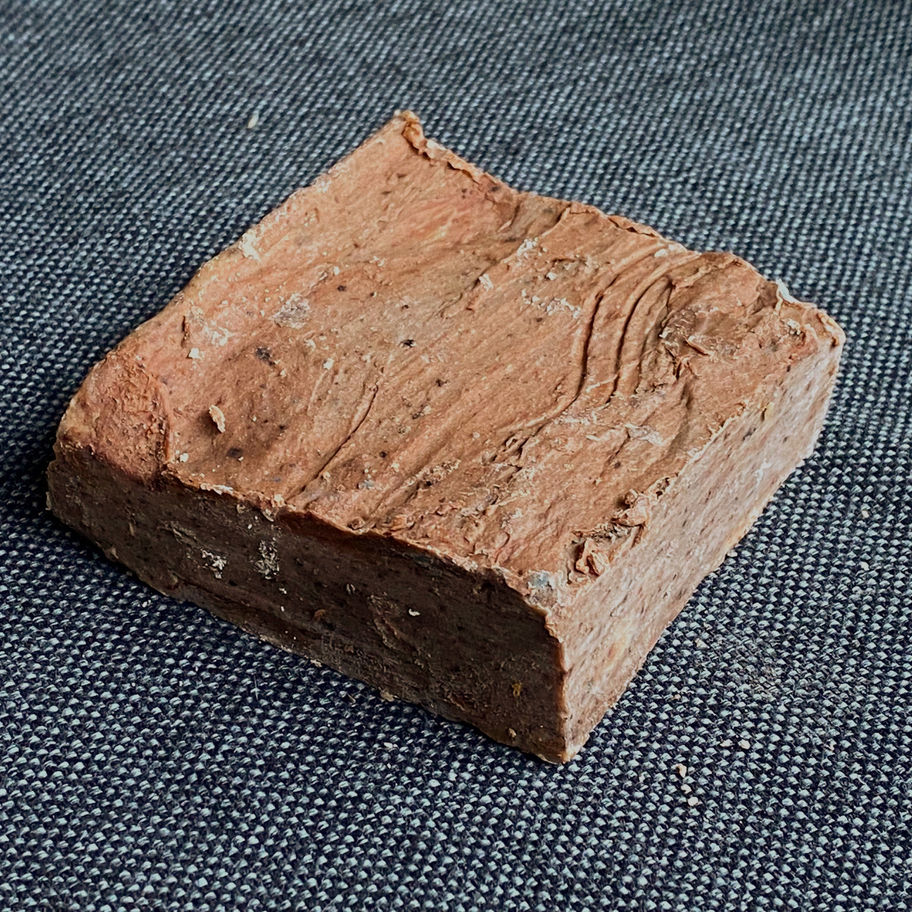 hand gemaakte zeep met sheabutter 80% en olijfolie 20%, argan meel en pure kruidnagel. Perfect desinfecterend en zacht voor de gevoelige huid.